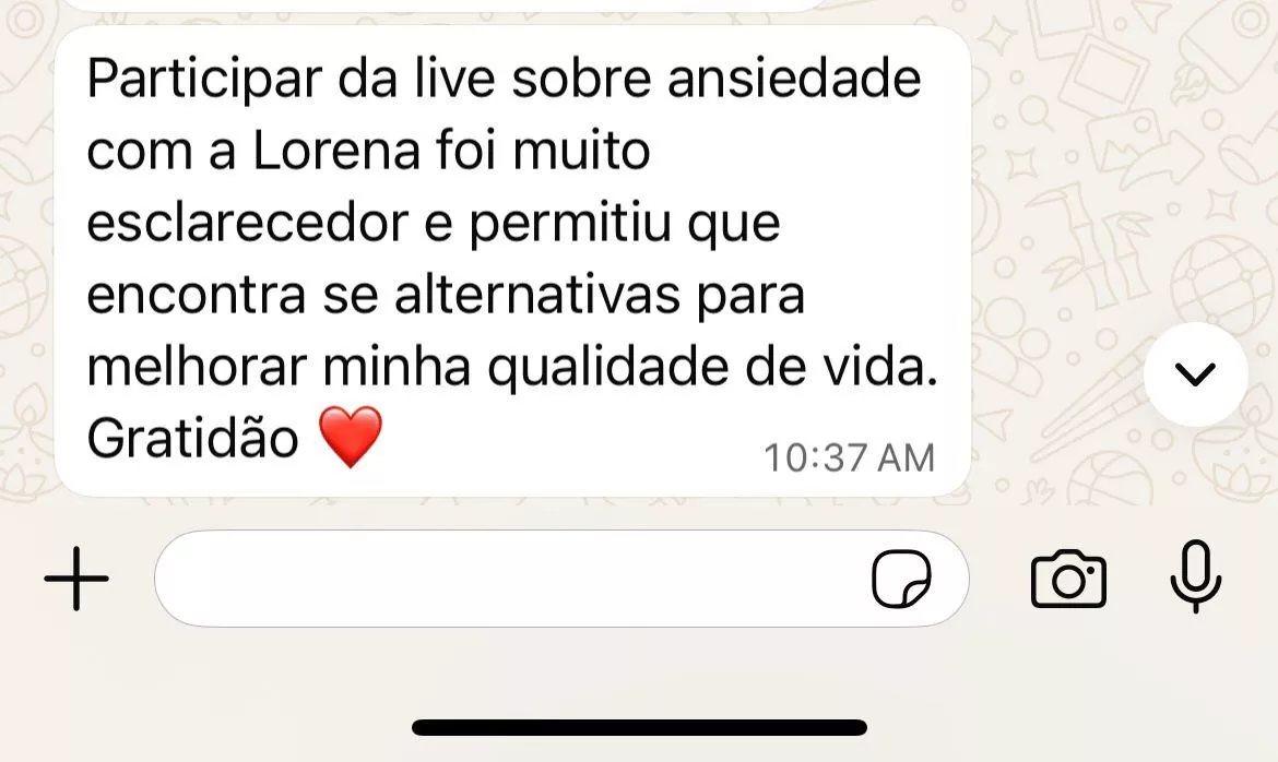 A ansiedade já me dominou. Vivi crises, medos, bloqueios... Até que encontrei um caminho que funcionou para mim. Criei esse curso para compartilhar o que me fez sair da paralisia e retomar o controle. Quero que você sinta que não está sozinha e que é possível viver em paz com a sua ansiedade.